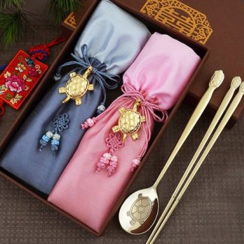 저희 H.jin 백수백복 골드티타늄 수저세트 B스타일은 고품질의 티타늄으로 만들어져 내구성이 뛰어나며, 추가로 제공되는 받침, 비단 주머니, 케이스, 쇼핑백 등 다양한 부속품들과 함께 온전한 쇼핑 경험을 선사합니다.