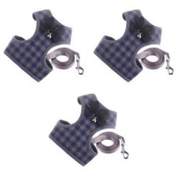 아리코 DrMini 양이 & 아지 체크스트라이프 하네스 스트랩 3p + 리드줄 3p, 블루