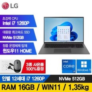 LG전자 그램 15인치 16인치 17인치 512GB RAM16G 정품윈도우포함 노트북, 그레이, i7, 16GB, WIN11 Home