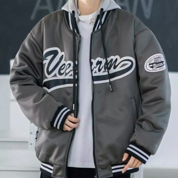 이 야구 점퍼 재킷은 남성을 위한 루즈핏으로 디자인되어 겨울에도 편안하게 착용할 수 있습니다.