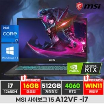 MSI 사이보그 15 A12VF i7-12650H RTX4060 게이밍노트북, A12VF-i7, WIN11 Home, 16GB, 512GB, 블랙