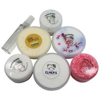 우리 제품의 독특한 특징은 하나로 통합된 세트로, 다양한 용량과 종류의 슬라임과 함께 액티베이터 스프레이를 함께 제공한다는 것입니다.