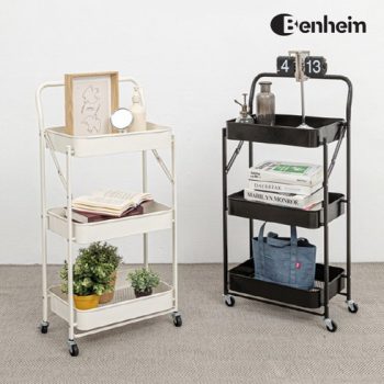벤하임 스마트리빙 접이식 트롤리 3단트롤리 이동식 바퀴 선반, 아이보리