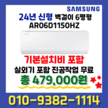 삼성 벽걸이에어컨 6평형 24년형 인버터 AR06D1150HZS 기본설치무료 정품자재시공 미개봉시 무료반품 빠른설치