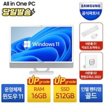 삼성전자 올인원 일체형 PC 프로스트 화이트 DM530ADA-L25A (펜티엄골드 7505 60.5cm WIN11 Pro) 기업용 사무용 학습용, RAM 16GB + SSD 512GB