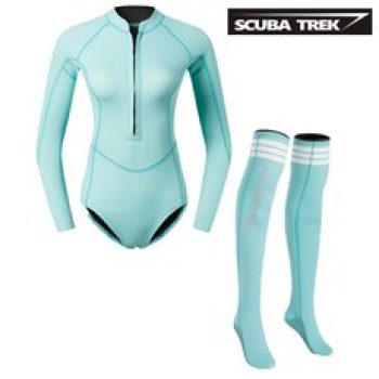 2mm 여성용 프리다이빙슈트 서핑 웻슈트 잠수복 스노클링 바다수영, S, 하늘색 점프수트 + 1.5mm 하늘색 양말