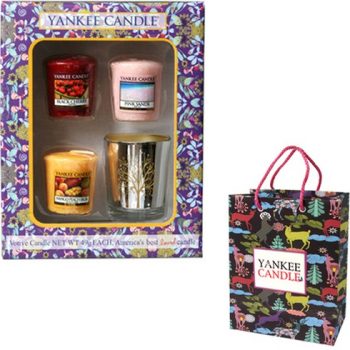 양키캔들 보티브 3종 캔들 + 실버나무 골드홀더 + 선물박스 + 쇼핑백, 랜덤발송, 1세트