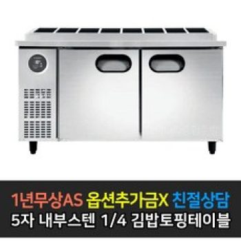 [스타리온] 업소용냉장고 김밥토핑테이블냉장고 1500 5자 LG전자 AS (컴프레셔 3년), 내부스텐 1/4밧드 SR-G15EIEVH
