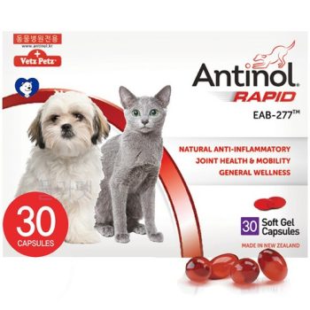 강아지와 고양이의 관절 건강을 위해 특별히 개발된 안티놀 래피드는 한 번에 먹을 수 있는 30정의 간편한 캡슐형태로 제공됩니다.