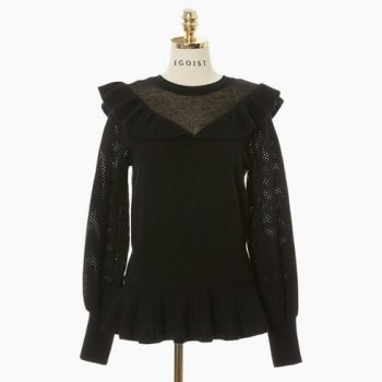 에고이스트 블랙 페플럼 러플 니트 EL4KL262