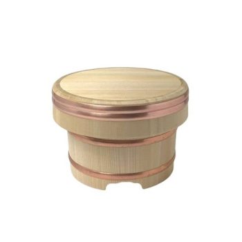 이 제품의 독특한 특징은 히노키 천연 나무로 만들어진 통에 수납할 수 있는 15cm(샤모지 첨부)와 24cm 크기의 일본식 스시 통이라는 것입니다.