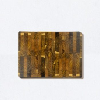 제품의 독특한 기능 중 하나는 벨르썸 엔드그레인 도마의 티크 우드와 거치대의 혼합색상입니다.