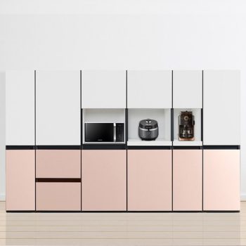 빌트인 광폭 주방수납장 렌지대 시리즈의 유니크한 특징은 홈카페 키큰 팬트리장인데요! 이 제품은 크림화이트와 로투스핑크 컬러로 제작되어 주방 인테리어에 화사함을 더할 뿐만 아니라 유용한 수납공간을 제공합니다!