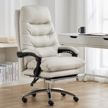 SeekFun 침대형 리클라이너 컴퓨터의자 가죽의자 중역의자, 화이트