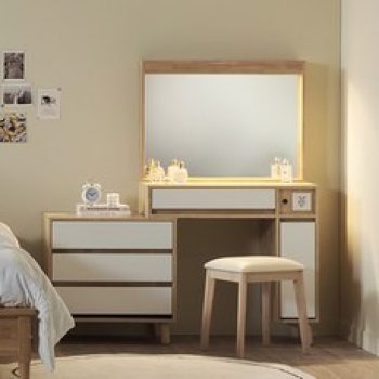도노 LED 확장형 사각 거울 + 화장대 방문설치, 오크화이트