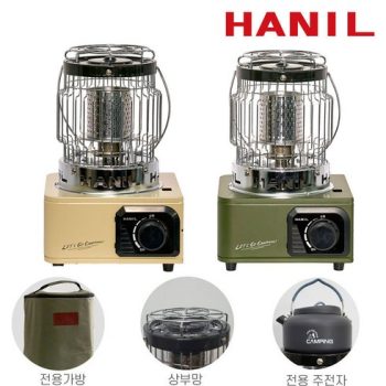 한일 캠핑 가스 난로 히터 낚시 야외용 전용가방 상부망포함 미니 가스난로 전용 주전자증정, GHM-1415K(카키)