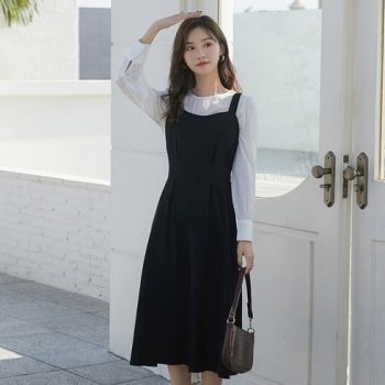 2023년 가성비 최고 통통녀하객룩 - 타니즈 도펜 라운드넥 블라우스 세트 뷔스티에 원피스