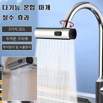 폭포수 수도꼭지 싱크대수전 360° 다방향 회전, 전기도금 폭포수 헤드 (3단출수), 1개
