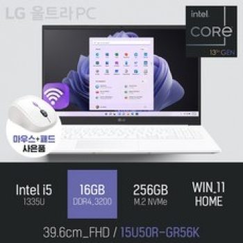 LG전자 2023 울트라PC 15 코어i3 인텔 13세대, 화이트, 256GB, 8GB, WIN11 Home, 15U50R-GR36K