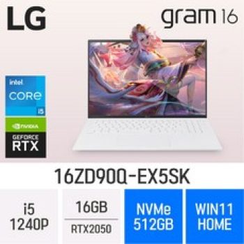 [한컴오피스/파우치] 23년 제조 LG전자 그램 16인치 윈도우11 RTX 2050 i5 12세대 16GB 256GB, 화이트, 16ZD90Q-EX5SK, 코어i5, WIN11 Home