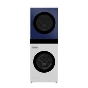 효율적인 세탁 및 건조를 한 번에 처리할 수 있는 LG전자 트롬 오브제컬렉션 워시타워의 25kg 세탁기와 22kg 건조기의 조합입니다.